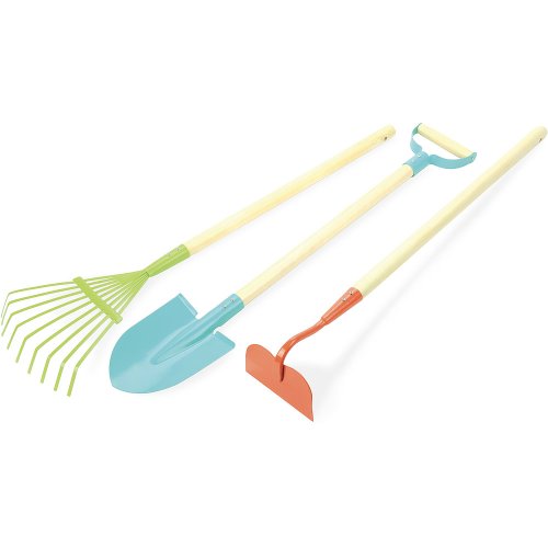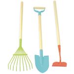Velký zahradnický set obsahuje rukavice, motyku, hrábě a rýč. Zahradničte jako profesionálové! Skvělá hračka, která děti učí péči o zahradu. Vyrobeno z kovu a dřeva. Hlavní vlastnosti: ideální velikost pro dětirozvíjí motoriku, rovnováhu a vztah k příroděvyrobeno z kovu, dřevěná násada