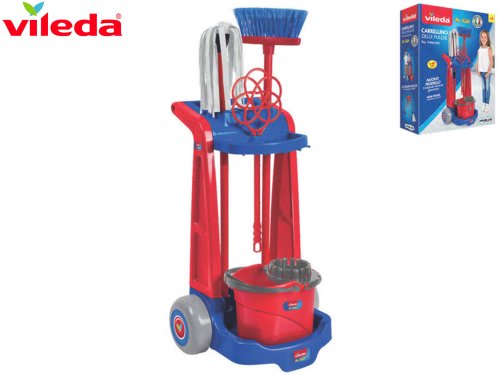 Uklízecí sada s vozíkem Vileda – obsahuje vozík, kbelík s turbem, mop, smeták, lopatku a klepačku.