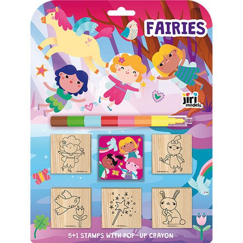 Set obsahuje 5 snadno uchopitelných dřevěných razítek, barevnou podušku s oblíbeným motivem a sedmibarevnou skládací voskovku pro vybarvování.