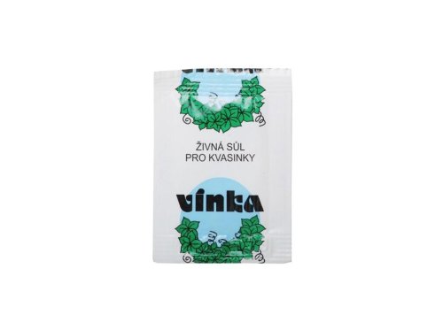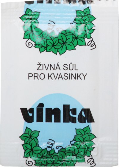 Obsah 1 sáčku živné soli Vínka stačí pro dodání živin pro dostatečný nárůst kvasinek pro kvašení 10-ti litrů.