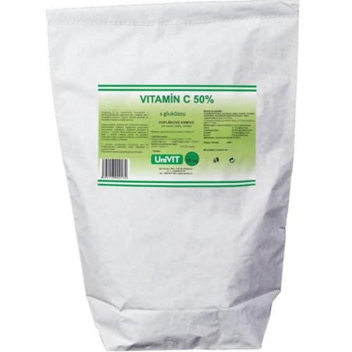 Vitamín C je důležitým činitelem v obraně proti infekcím jak u mláďat, tak u dospělých jedinců. Působí příznivě na rezistenci kapilár a srážlivost krve. Jako doplněk stravy lze použít pro podpůrnou léčbu při infekčních onemocněních, krvácivých stavech, mimořádném zatížení organismu, poruchách reprodukce, inapetenci (nechutenství), změnách prostředí a potravy, v období rekonvalescence a v období mléčné výživy (zejména u telat). U prasat a drůbeže je vhodný pro prevenci a terapii stresových stavů. U drůbeže pozitivně ovlivňuje snášku. Glukóza je nezbytná pro fungování organismu. Je to základní a nejrychlejší zdroj energie pro buňky. Způsob použití: Podávejte ve směsi se sypkým krmivem nebo v pitné vodě. Přípravek podávejte jen ve smaltovaných nebo umělohmotných nádobách. Připravený roztok spotřebujte do 24 hodin. Dietetická a preventivní aplikace je možná po dobu 5–25 dnů. V případě potřeby lze dávku po dobu 5–7 dnů navýšit 2–3krát a dále pokračovat v aplikaci preventivních dávek. Dávkování 50% vitamínu C: savci: 5–15 mg na 1 kg živé hmotnosti exotičtí ptáci: 25–50 mg na 1 litr pitné vody drůbež: 10–25 mg na 1 kg živé hmotnosti (na 125 mg/kg krmiva) morčata: 0,5 g na 1 l pitné vody