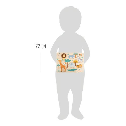 Vítejte na safari! Toto dřevěné puzzle ma za cíl vrátit zvířátka savany zpět na jejich místo. Nejen, že trénuje motoriku dětí, zároveň jim pomůže s rozeznáváním tvarů a bude od nich vyžadovat soustředěnost a trpělivost. Puzzle nadchne rodiče i děti svými veselými motivy safari a trendy barvami. Věk: 2+ Materiál: dřevo Počet zvířátek: 7 ks Rozměry: 30 x 22 x 1 cm