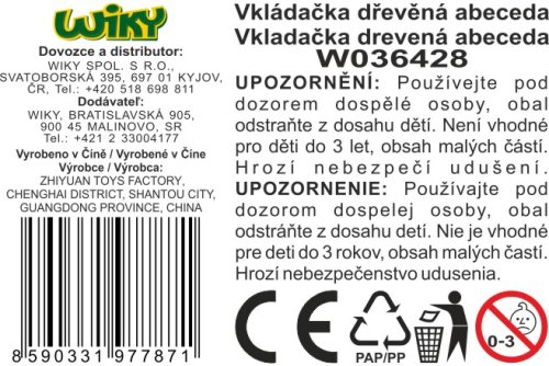 Vkládačka dřevěná abeceda. Rozměry 30x22,5 cm.