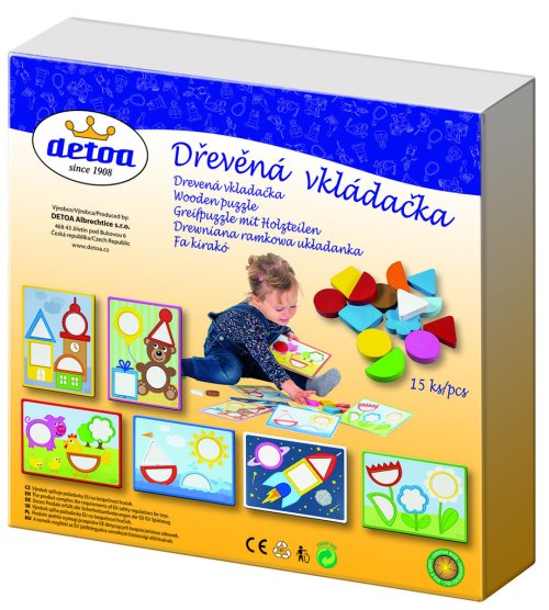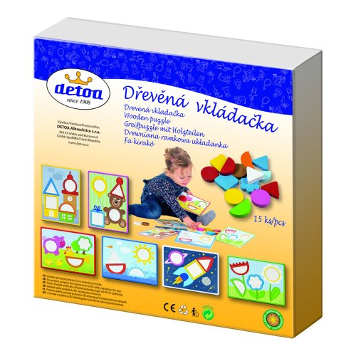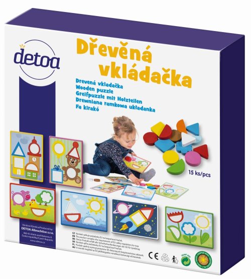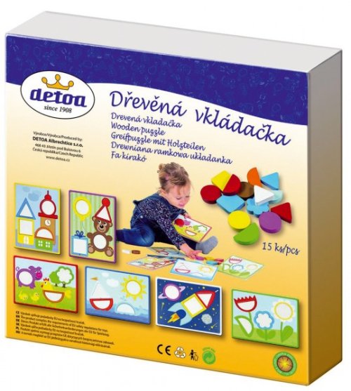 Obsah balení: 15 dřevěných kamenů, 6 papírových vzorů vkládačky