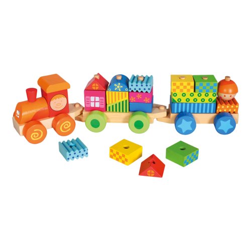 Dřevěný vláček s veselými jasnými barvami je tahací hračkou a stavebnicí v jednom. Záleží jen na fantazii Vaší ratolesti, jak naloží s vagónky a jejich nákladem v podobě kostek rozmanitých tvarů. Vyrobeno z odolného masivního dřeva. Hlavní vlastnosti:3 podvozky a 18 různých kostekodolné dřevěné provedení
