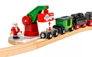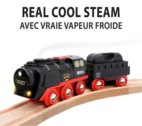 Sada s parní lokomotivou, která vytváří bezpečný efekt páry, nadchne každé dítě i dospělého. Stačí ji umístit kolem stojanu vánočního stromku a sledovat, jak se vláček rozjíždí po dřevěných a zasněžených kolejích. Díky důmyslnému zpracování působí pohyb i pára velmi realisticky. Lokomotiva funguje na 2× AAA baterie (nejsou součástí) a vodu lze snadno doplnit do zásobníku.