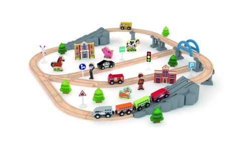 Obsahuje dřevěný vláček, kolej, zvířátka, figurky a doplňky Rozvíjí kreativitu, logiku a koordinaci Kvalitní a odolný přírodní materiál