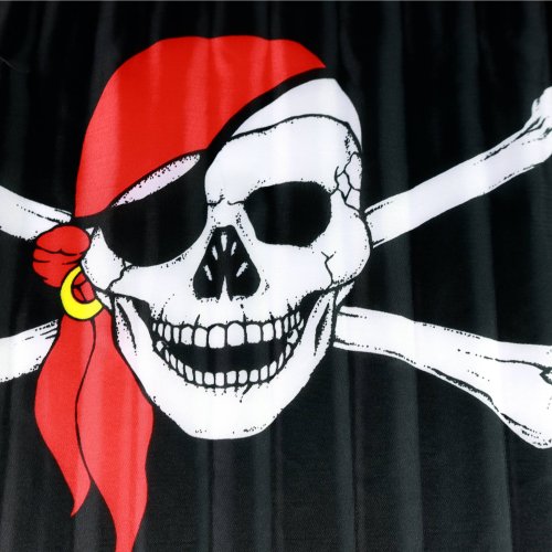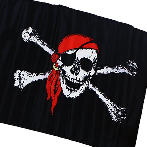 Parádní vlajka s děsivým, pirátským motivem pro skutečné piráty! Vlajka má rozměry 47 x 30 cm a je připevněna k dřevěné hůlce dlouhé 62 cm. Tento parádní kousek je senzačním doplňkem či dekorací každého karnevalového večírku!