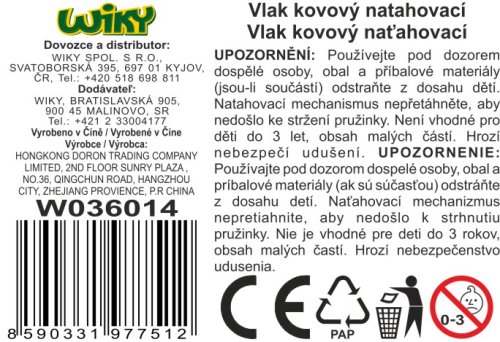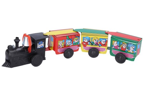 Natahovací kovový vlak, lokomotiva a dva vagónky zaujme jistě každé malé dítko. Stačí natáhnout klíček a vláček jede jako o závod. Velikost vlaku: 28 cm Rozměr balení: 28 x 5,5 x 5 cm Vhodné pro děti od 3 let