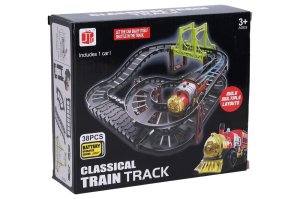 Vydejte se na cestu plnou fantazie s klasickou vláčkodráhou! Tato nadčasová hračka potěší každého malého strojvůdce – vláček krouží po kruhové dráze. Sestavení kolejí podporuje logické myšlení a představivost. Sada obsahuje 38 dílů. Aktivace mašinky ON/OFF přepínačem na spodní straně. Baterie 1xAA, nejsou součástí. Rozměry dráhy 31x32x14 cm. Vhodné pro děti od 3 let.