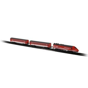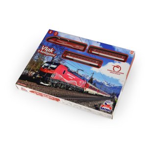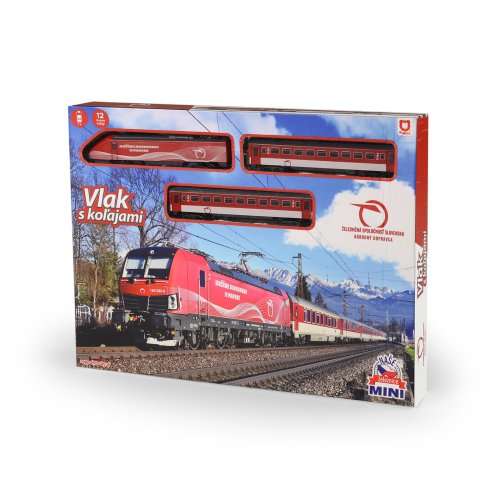 Milujete cestování vlakem? Tak sestavte koleje, postavte na ně lokomotivu, připojte vagóny a vzhůru za dobrodružstvím! Originální vlak Slovenské dráhy obsahuje lokomotivu a 2 vagónky, 8 zahnutých a 4 rovné koleje. Lze vytvořit kolejiště až do velikosti 96 x 58 cm. Rozteč kolejí je 1,4 cm. Lokomotiva měří na délku 14 cm a vagón 13,5 cm. Lokomotiva jezdí na 1 ks AA baterie (není součástí), na střeše lokomotivy vypínačem ON/OFF (zapnuto/vypnuto) uvedete vlak do chodu. Vlak Slovenské dráhy MINI lze kombinovat s vlakem RegioJet MINI a Vlakem Pendolino MINI.