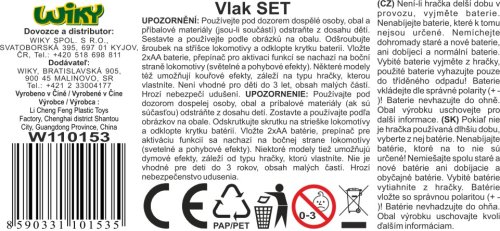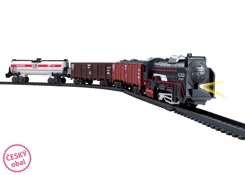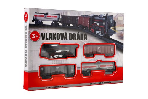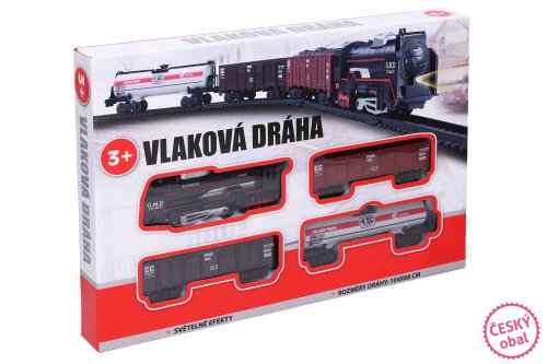 Vláček set malý. Balení obsahuje: lokomotivu, 3 vagónky, koleje. K provozu jsou třeba 2 x AA baterie. Délka okruhu: 104 cm. Šířka okruhu: 68 cm. Rozměry balení 35 x 24 x 4 cm. Vhodné pro děti od 3 let.
