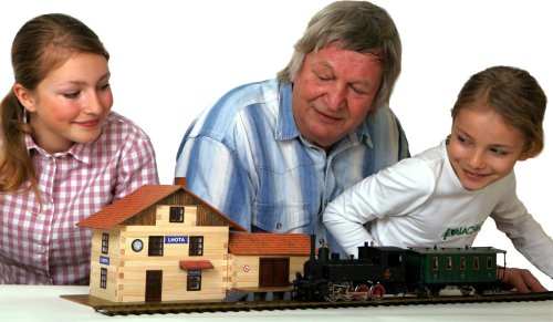 Stavebnice se skládá z 213 dílků a naleznete v ní všechno potřebné k sestavení. Součástí stavebnice jsou dřevěné hranolky o průřezu 9×9 mm daných délek ke stavbě roubených stěn, díly na štíty a střechy, kartonové výseky oken a dveří i barevné papírové potisky, plochy štítů, střech, stříšek, dveří, oken a dlažeb, folie oken a brusný papír na opracování dřevěných dílů (kvalita ploch však opracování potřebuje minimálně). Součástí stavebnice je podrobný schématický montážní plán. Stavebnice se slepuje lepidlem na dřevo nebo papír. Lepidlo není součástí balení. Železniční stanice je vyrobena v měřítku 1:45. Rozměry: 40 x 18 x 18 cm Věk: 8+