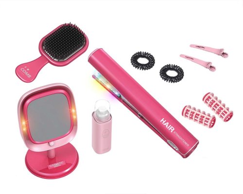 Set "Vlasové studio vlasová žehlička + zrcadlo" je navržený jako kompletní sada pro malé parádnice, které si chtějí hrát na kadeřnice a rozvíjet svou kreativitu v oblasti péče o vlasy. Tento produkt obsahuje několik pečlivě vybraných doplňků v růžové barvě, které jsou vyrobené z kvalitního plastu a mají příjemný, moderní design. Součástí balení je vlasová žehlička s efekty světla a zvuku, čímž napodobuje reálné profesionální vybavení kadeřnického salonu.