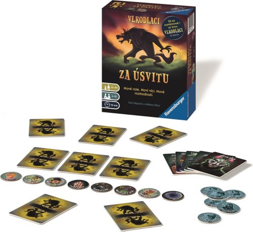 Nic pro strašpytly! Dokážete mistrovsky klamat a šálit? Nikdo si na vás nepřijde? Pak jste tu správně! Nové role. Noví vlci. Nová rozhodnutí. Vlkodlaci jsou zpět, a teď ještě kousavější! Je to vlk nebo ne? To je ta otázka! Protože tady jsou všichni maximálně podezřelí... Po úspěchu blafovací hry „Vlkodlaci za úplňku” na vás čeká 16 zábavných rolí, z toho 13 úplně nových. Vklouzněte do jedné z různých rolí a mějte se na pozoru: Kdo je zákeřný vlkodlak? A kdo neškodný vesničan? Máte jen jednu šanci to zjistit! To vše včetně překvapivých zvratů a těžkých rozhodnutí! Buďte u toho, až se znovu ozve: „Všichni zavřete oči!” Tato napínavá společenská hra vás s partou přátel zabaví klidně na celý večer. Nechce se nikdo z vás ujmout role moderátora? Nevadí. Součástí hry je aplikace, kterou si snadno a zdarma stáhnete do svého chytrého telefonu, a pomocí nahrávek za vás převezme roli moderátora a provede vás celou hrou. Objevte 13 zbrusu nových rolí! Exkluzivně: Vědma. Obsah: 16 karet rolí, 16 žetonu rolí, 2 štíty, 6 artefaktů.