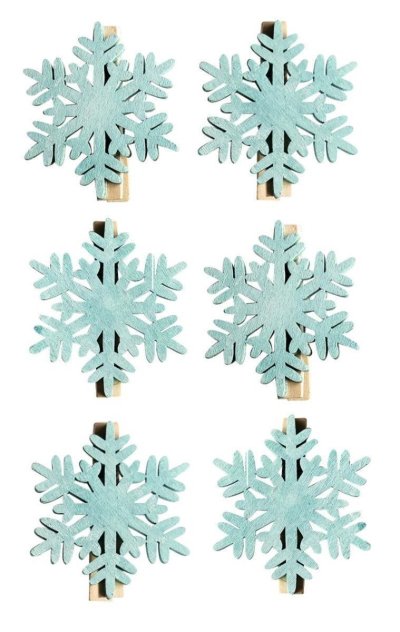 komponenty ke zdobení Vločka dřevěná na kolíčku 6 cm 6 ks