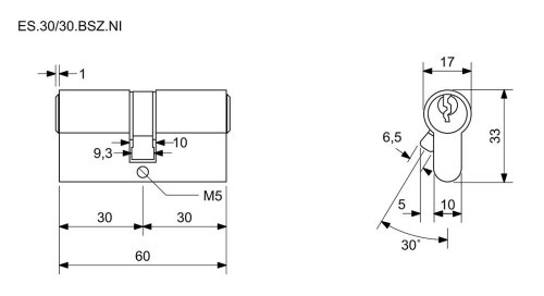 Vložka cylindrická 30+30 6 kl. Ni, 3. třída bezpečnosti s prostupovou spojkou RICHTER.
