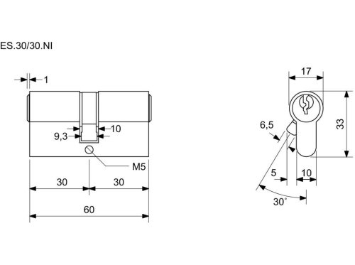 Vložka cylindrická 30+30 6kl. Ni, 3.třída bezpečnosti RICHTER.
