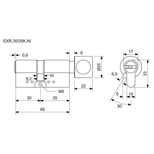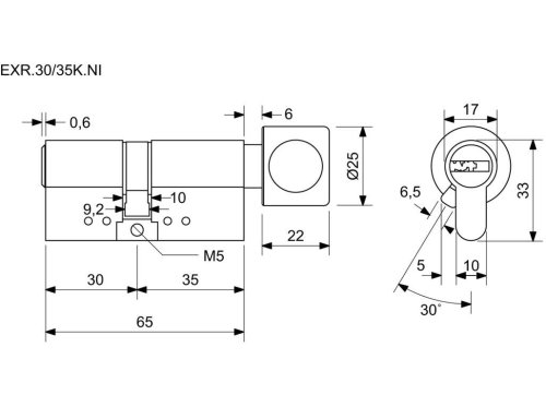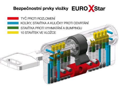 rozměr: 30 + 35 bezpečnostní třída 4 10-ti stavítková vložka s ocelovou tyčí proti rozlomení materiál: Ni 6 ks klíčů