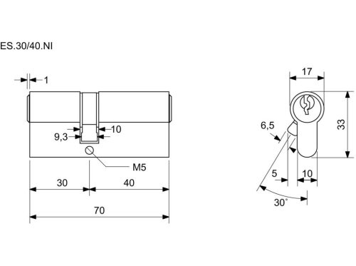 Vložka cylindrická 30 + 40 6 kl. Ni, 3.třída bezpečnosti RICHTER.