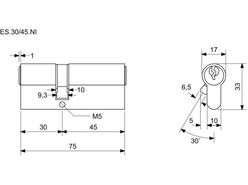 Vložka cylindrická 30 + 45 6 kl. Ni, 3.třída bezpečnosti RICHTER.