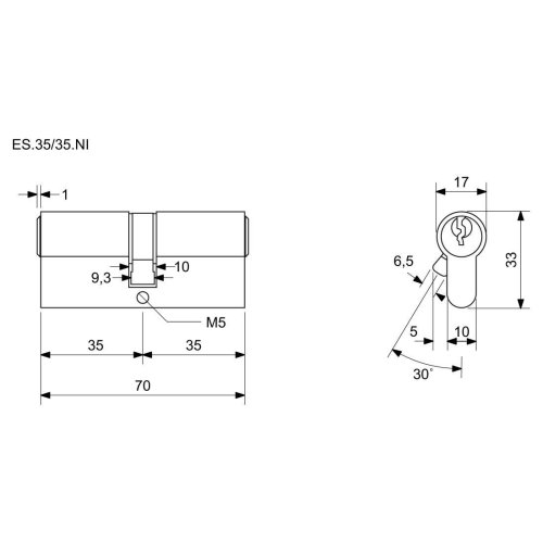 Vložka cylindrická 35 + 35 6 kl. Ni, 3.třída bezpečnosti RICHTER.