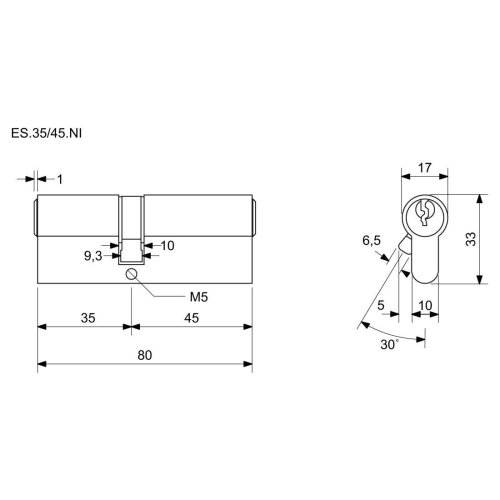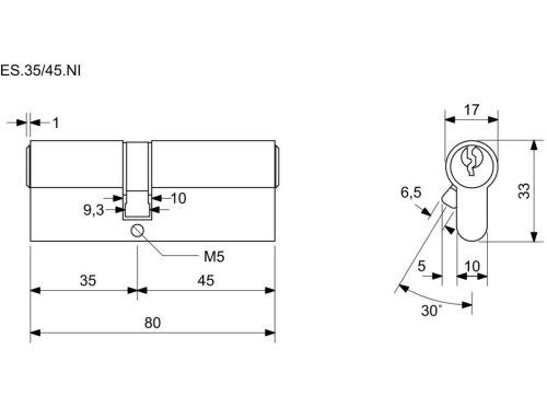 Vložka cylindrická 35 + 45 6 kl. Ni, 3.třída bezpečnosti RICHTER.