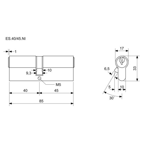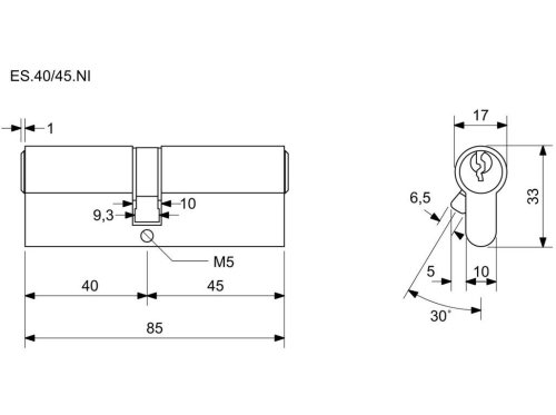 Vložka cylindrická 40 + 45 6 kl. Ni, 3.třída bezpečnosti RICHTER.