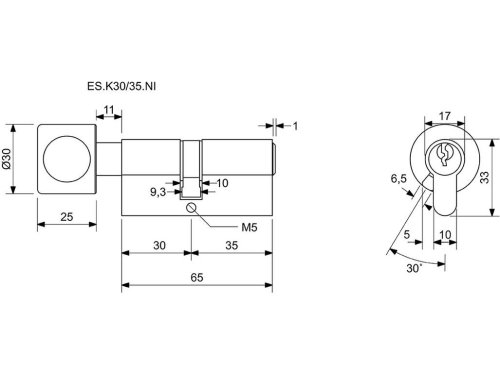 Vložka cylindrická K30+35 s knoflíkem 6 kl. Ni, 3. třída bezpečnosti RICHTER.
