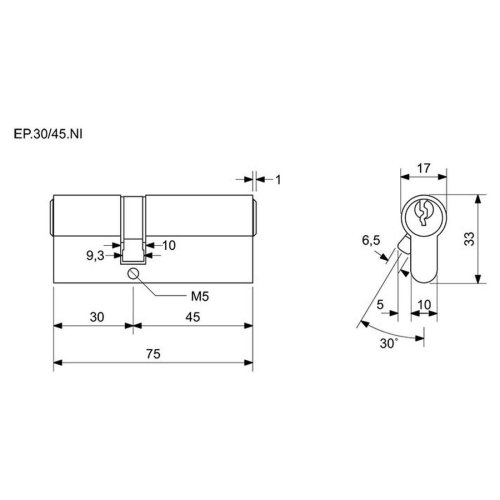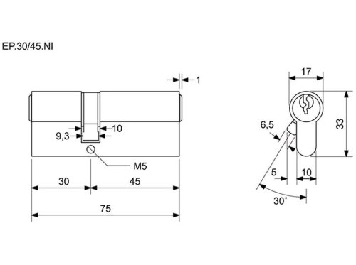 Vložka cylindrická stavební 30+45 3kl. Ni RICHTER