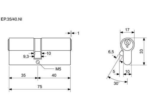 Stavební 5stavítková vložka. Materiál vložky a klíčů: mosaz Povrchová úprava: matný nikl (NI) Možnost společného uzávěru - „SU“ - cena mimo uvedené rozměry níže, viz Katalog dílů. Volně kopírovatelný klíč. Balení obsahuje: 3 ks klíčů 2 ks šroubů 50 + 60 mm Standardně jsou vložky baleny v krabičce. Možno také objednat v transparentním blistru + á 7,- Kč/ks.