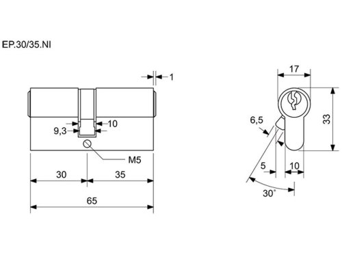Vložka cylindrická stavební EP 30+35 3 kl. Ni RICHTER.