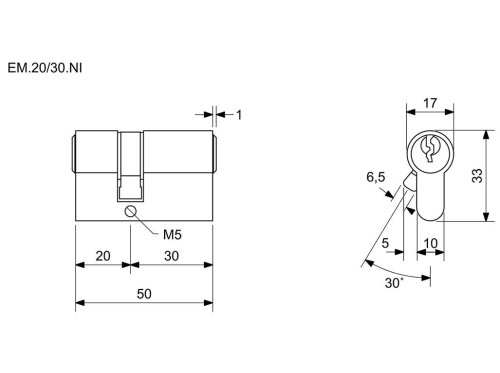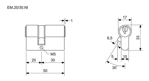 Vložka stavební EURO MINUS 20+30, 3 klíče, Ni, RICHTER.