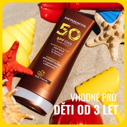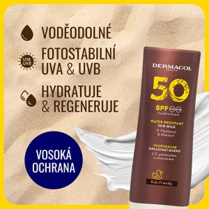 Voděodolné opalovací mléko SPF 50 s účinnou a spolehlivou ochranou proti UVA a UVB, chrání pokožku před spálením a poškozením. Zklidňuje pokožku a zabraňuje jejímu podráždění. Vhodné i pro jemnou dětskou pokožku od 3 let.