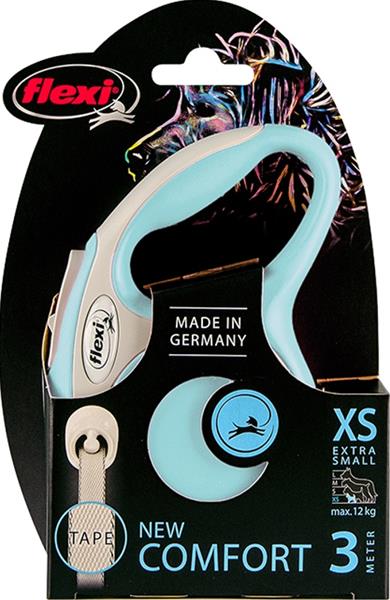 Dokonale navržené dvoubarevné vodítko Vás upoutá na první pohled. New Comfort nabízí všechny funkce, které potřebujete a proto si ho brzy zamilujete! Vylepšený brzdový systém s krátkým zdvihem umožňuje více kontroly, ergonomické držadlo je nastavitelné dle velikosti ruky (od velikosti M). Lze přidat i Multi Box pro ukládání pamlsků či sáčků (od velikosti S). Rodinná firma flexi vyrábí výhradně na území Německa. V závodě v Bargteheide u Hamburgu vzniká vše, počínaje návrhem až po výrobu vysoce kvalitních vodítek – Made in Germany. Firma flexi je vynálezcem samonavíjecího vodítka a jedničkou na světovém trhu, exportuje do více než 90 zemí světa. Originální samonavíjecí vodítka flexi se vyznačují patentovaným, po technické stránce nejmodernějším pružinovým systémem a komfortním ovládáním. Jsou vyráběna z vysoce kvalitních materiálů, exkluzivně manuálně zpracovaná a sestavená. Vodítka prochází před expedicí mnoha kontrolami kvality. Velikost: XS – vhodné pro psy o hmotnosti do 12 kg. Typ vodítka: Navíjecí – pásek. Délka pásku/lanka: 3 m Barva: světle modrá