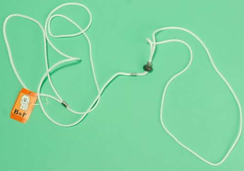 Předváděcí vodítko z nylonu v bílé barvě s jednoduchým způsobem nasazení. Jde o speciální výstavní vodítko, které v sobě má vodítko i obojek. Velikost obojku lze upravit pomocí kovového kroužku. Rozměry: 0,3 x 140 cm.