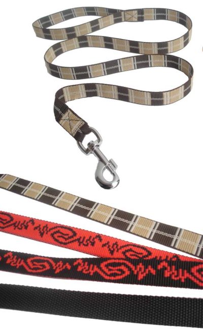 Popruhové vodítko z odolného polypropylenu s tkaným vzorem.