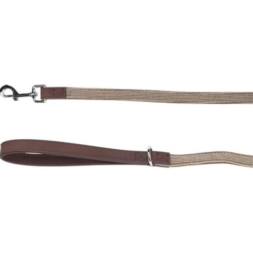 Vodítko z odolného nylonu s rukojetí z umělé kůže má chromovanou karabinu a u rukojeti D-kroužek umožňující připevnění dalších předmětů (např. pouzdra se sáčky na exkrementy) nebo zavěšení vodítka přes rameno. Pro větší pevnost a trvanlivost jsou popruh i rukojeť důkladně prošité. Rozměry (cca): 130 × 2 cm Materiál: nylon, umělá kůže Barva: světle hnědá