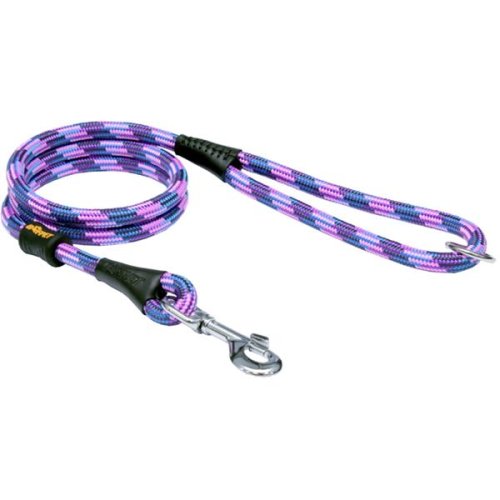 Vodítko z velmi pevného lana je vhodné pro střední a velká plemena. Spoje jsou svařené, prošité a zabezpečené koženou krytkou. V uchu je svařovaný kroužek, který umožňuje zkrácení vodítka na polovinu. Díky koženým prvkům se vodítko hodí i ke koženým obojkům. Rozměry: délka 150 cm Ø 12 mm Barva: fialová