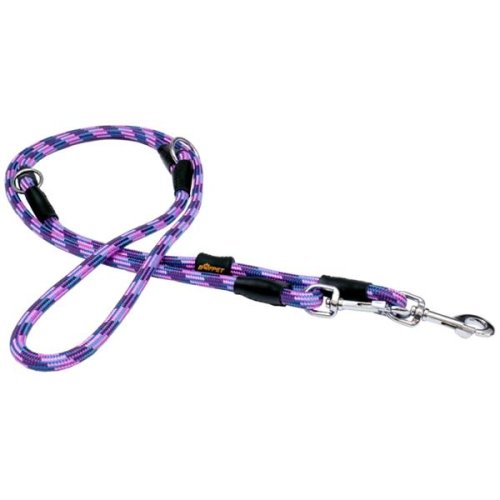 Přepínací vodítko z velmi pevného lana je vhodné pro střední a velká plemena. Spoje jsou svařené, prošité a zabezpečené koženou krytkou. Po délce lana je několik svařovaných kroužků, s jejichž pomocí lze vodítko prodlužovat a zkracovat dle potřeby. Díky koženým prvkům se vodítko hodí i ke koženým obojkům. Rozměry: délka 240 cm Ø 12 mm Barva: fialová
