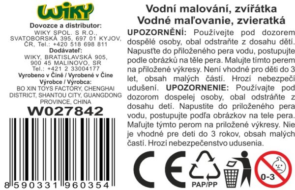 Vodní malování zvířátka. Rozměry 18,5x15,5 cm. Balení obsahuje vodní pero.