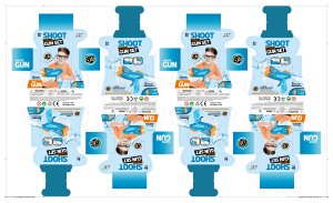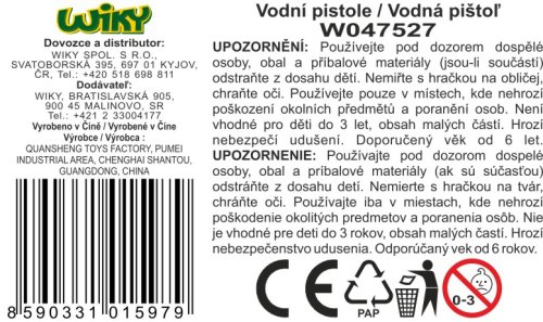 Vodní pistole. Rozměry 23x5x17 cm. Dostřel 8 m. Objem vodní nádržky 300 ml.