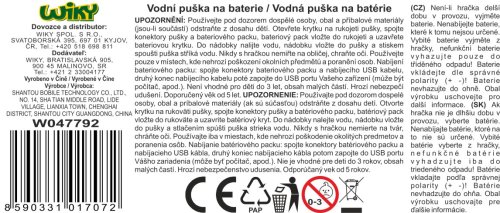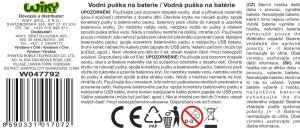 Vodní puška elektrická. Přesné rozměry pušky 41,2x19,5x5,7 cm. 2 varianty - zelená, bílá. Bateriový pack 1x3.7V 500mA, součástí balení.