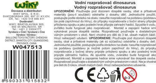 Vodní rozprašovač dinosaurus. Velikost 11x7x25,5 cm. 2 varianty - modrá, oranžová.