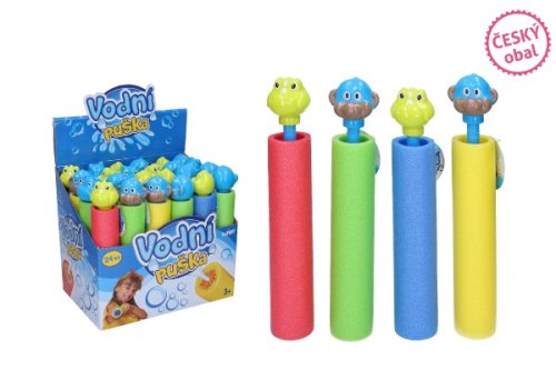 Pistole vodní EVA se zvířátkem. Velikost 26 cm. 24 ks display box. 3 varianty - dinosaurus, opice, hroch.