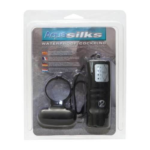 Vodotěsný černý vibrační kroužek na ovládání - Aqua Silks Cockring