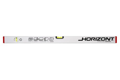 Horizont vodováha se dvěma libelami, přesnost 0,5mm/m = 0,0285°, eloxovaný otěruvzdorný povrch, tloušťka stěny ALU profilu 1,5mm, kapalina v libelách je UV stabilizovaná a fluorescenční, horizontální optická libela - usnadňuje a zvyšuje přesnost měření, vodováha je odolná proti provozním nárazům, 10 let záruka na libely, KAŽDÝ KUS ELEKTRONICKY TESTOVÁN.