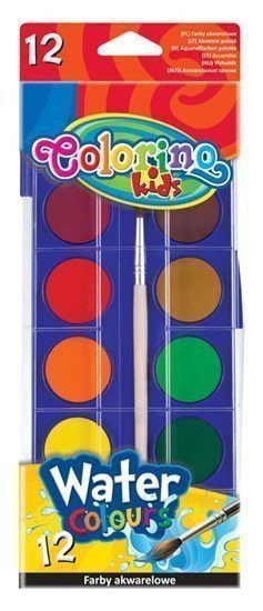 Kvalitní vodové barvy s vysokým podílem pigmentu. Při opakovaném používání nepopraskají. Praktické plastové pouzdro s kulatým štětcem. Rozměr pouzdra: 21 x 9 cm. Určeno pro děti od 3 let. Barvy jsou netoxické. balení: 12 barev+štětec/pouzdro.
