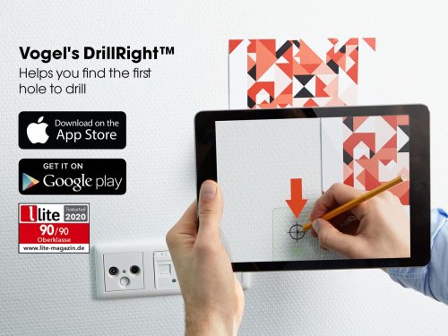 Snadná instalace s aplikací DrillRight™ AR App - vyznačení všech otvorů pro montáž držáku v požadované poloze TV na stěně