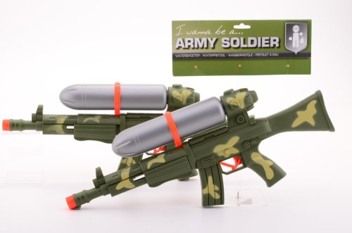 Mega vojenská vodní pistole se zásobníkem na vodu nesmí chybět na žádné vodní střílečce. Velikost pistole 50 cm.